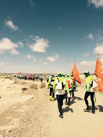 5月22日戈壁挑戰(zhàn)賽開賽首日,來自49所院校商學(xué)院的2000多名戈友再一次齊聚在阿育王寺,在塵沙和烈風(fēng)中鳴槍起跑。不遠(yuǎn)處,阿育王塔依然矗立。于是,千年的滄桑和青春的激揚(yáng),就這樣融合進(jìn)了那黃土漫漫、蕩氣回腸的茫茫弋壁中。在這群隊(duì)伍中,有一群來自大集的勇士,始終最積極、最燦爛、最耀眼的姿態(tài)將自己展現(xiàn)在不見邊際的天地盡頭,這便是由公司董事長帶領(lǐng),對戈壁之行充滿著無限的幻想和探索的大集人。
