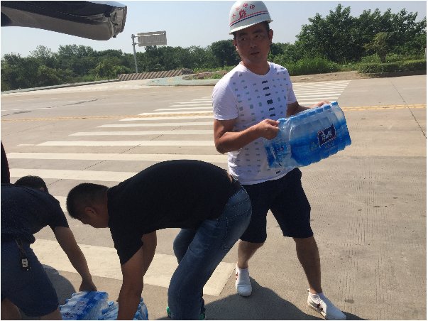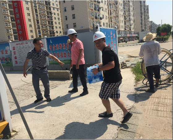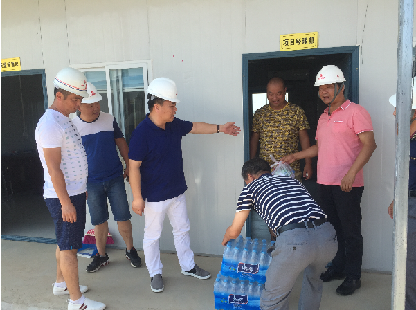 “現(xiàn)在天氣炎熱,大家要注意高溫施工安全,做好防暑降溫工作!”每到一處,公司總經(jīng)理和副總就耐心跟施工現(xiàn)場(chǎng)人員叮囑一番,同時(shí)要求相關(guān)負(fù)責(zé)人千方百計(jì)做好員工的后勤保障工作,加強(qiáng)對(duì)飲用水、食品和工地食堂衛(wèi)生管理,確保一線人員身體健康。慰問(wèn)組人員親手把礦泉水、藥品等防暑降溫用品送到施工現(xiàn)場(chǎng)人員手上,施工現(xiàn)場(chǎng)負(fù)責(zé)人一致表示,將按照集團(tuán)公司領(lǐng)導(dǎo)的要求,認(rèn)真做好施工現(xiàn)場(chǎng)防暑降溫工作和安全生產(chǎn)工作,保證工程各項(xiàng)工作的順利開展。