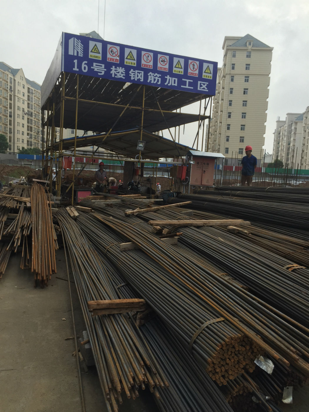 進入大門,工地上呈現熱火朝天、一片繁忙的景象,首先映入眼簾的是鋼筋加工棚里鋼筋堆放整齊,操作間機械設備都采取了相應的防護措施,施工場地經過通道硬化處理,外側排水溝施行有組織排水,道路排水通暢,工地無積水現象。材料堆放區(qū)搭設有工棚,各種成品、半成品及周轉材料的堆放井然有序,并做了相應的原材料保護措施。