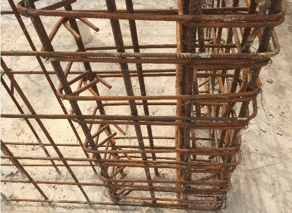 現場指揮部總指揮謝總工帶我們參觀了現場并大概介紹了各個棟號施工進度等方面的情況。我們首先進入16#樓施工現場,該棟號的項目經理徐斌親自現場督促,施工現場緊鑼密鼓的進行基礎承臺柱墻的鋼筋綁扎工作。剛剛完成的現澆混凝土承臺及承臺梁整體觀感好,整潔干凈、規(guī)范美觀。據謝總工介紹施工人員在混凝土澆筑時,先攤平振搗密實,然后用抹子抹平,緊接著再用掃帚在已抹好的面層上輕輕掃一遍,再用薄膜覆蓋住才能達到好的效果。承臺上正在綁扎鋼筋的墻柱,每個樣板上都張貼著相應的構件尺寸及鋼筋信息,便于檢查核對和施工操作,體現出該工程現場施工人員嚴謹認真的工作態(tài)度。