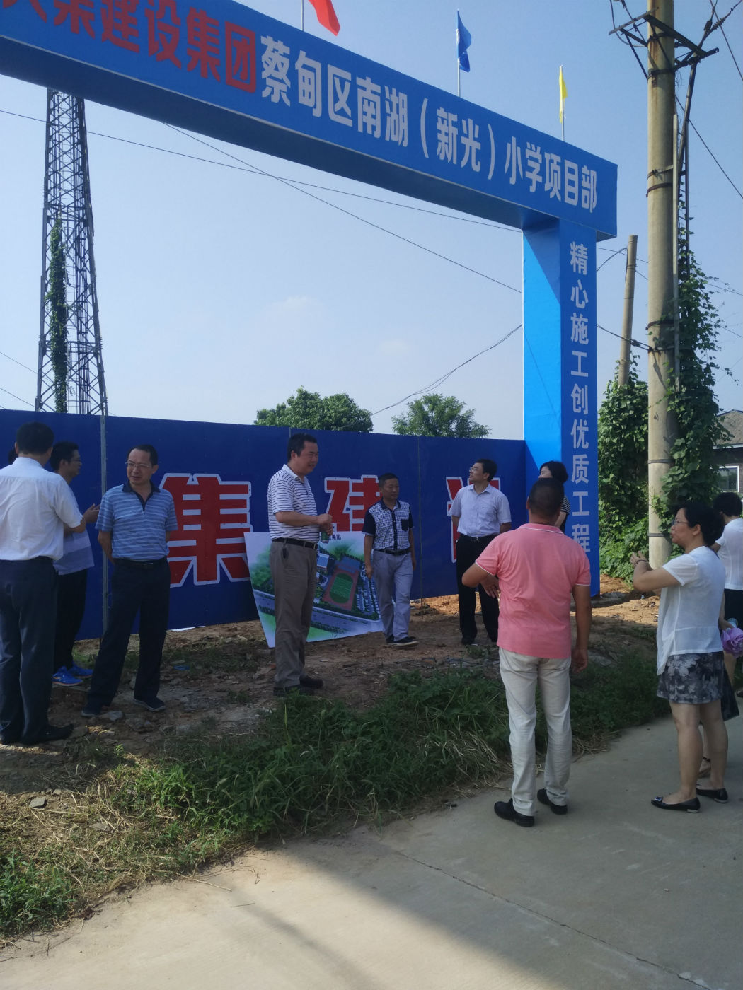 2016年8月12日,上午9:30武漢市教育局主要領(lǐng)導(dǎo)一行8人來(lái)到蔡甸區(qū)天鵝湖大道,考察了南湖(新光)小學(xué)建設(shè)情況。區(qū)教育局領(lǐng)導(dǎo),集團(tuán)公司徐副總及工程部負(fù)責(zé)人一起陪同。