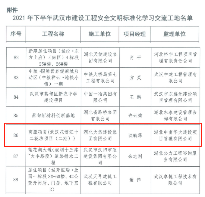 此次獲評“2021年下半年武漢市建設(shè)工程安全文明標準化學習交流工地” 稱號,不僅是對武漢花博匯十二花坊項目部(二期)安全管理和文明建設(shè)水平的肯定,也有力彰顯了公司企業(yè)形象,希望其他項目能多向做得好的項目學習,做到高標準,嚴要求,做品牌項目,打造公司口碑,將項目做成標準示范工程!