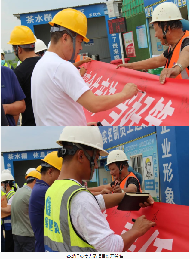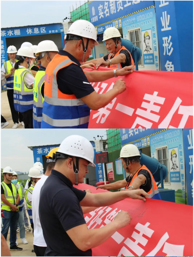 活動開始,集團董事長徐濤、副總經(jīng)理徐家富及各部門負責人、各項目經(jīng)理率先在“遵守安全生產(chǎn)法,當好第一責任人”條幅上鄭重簽名,寫下對肩負安全生產(chǎn)責任的承諾,隨后各項目施工員、安全員紛紛在條幅上寫下自己的名字,表達對做好安全生產(chǎn)相關工作的信心和決心。
