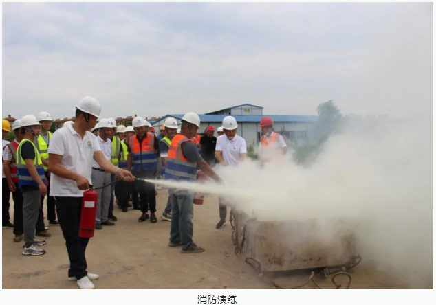 接下來,進入消防演練環(huán)節(jié)。集團公司工程部安全主管秦春波向全體人員詳細講解了滅火器的正確使用方法及在滅火過程中需要注意的事項,在實操訓練過程中,大家拿起滅火器,對準火源根部,按照使用步驟,一看二拔三壓四噴進行了實際操作體驗,迅速滅掉了現(xiàn)場模擬的著火點。
