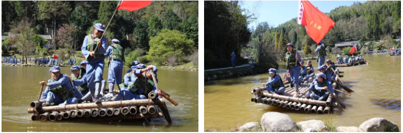 挺進(jìn)領(lǐng)袖峰,在培訓(xùn)教官的帶領(lǐng)下,學(xué)員們通過“重建紅軍部隊(duì)”、“搶渡大渡河”、“自做紅軍飯”等體驗(yàn)教學(xué),增強(qiáng)學(xué)員們團(tuán)結(jié)協(xié)作、不怕吃苦、英勇頑強(qiáng)的精神。