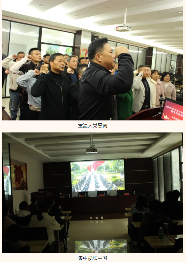會(huì)議第二項(xiàng)議程,召開了4月份支部主題黨日活動(dòng)。會(huì)議上,全體黨員起立奏唱國歌,并重溫入黨誓詞。集團(tuán)黨支部書記宣讀了中共蔡甸區(qū)委組織部《2023年4月份黨支部主題日重點(diǎn)學(xué)習(xí)內(nèi)容》后,大家集中視頻學(xué)習(xí)了《如何推進(jìn)國家安全體系和能力現(xiàn)代化》內(nèi)容。