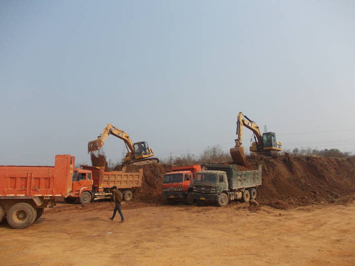近日,公司承接的常福工業(yè)園場平項目上9臺大挖機(jī)一字排開,四臺推土機(jī)來回穿梭,60臺轉(zhuǎn)運車輛川流不息,施工場面異?;鸨?,為來年施工開了一個好局面。