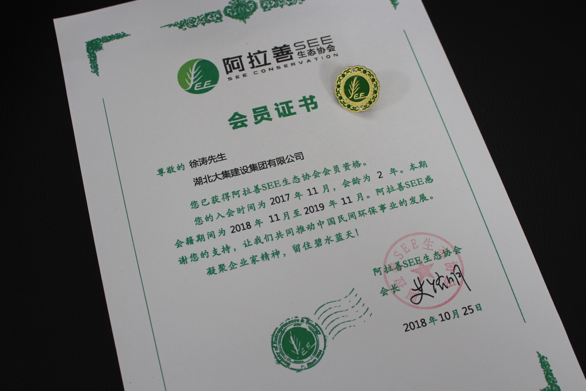 2017年11月,集團(tuán)董事長徐濤攜湖北大集建設(shè)集團(tuán)正式加入中國最具影響力的環(huán)境保護(hù)公益組織——阿拉善SEE生態(tài)協(xié)會(huì),正式成為阿拉善SEE會(huì)員。到如今,集團(tuán)加入阿拉善SEE生態(tài)協(xié)會(huì)已經(jīng)第二個(gè)年頭了。